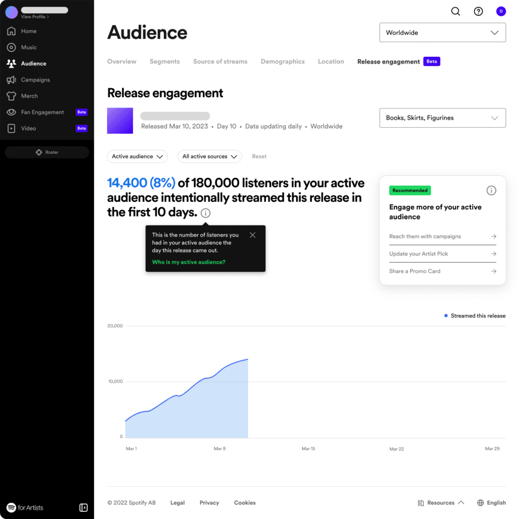 Spotify is making updates to the Release Engagement page in Spotify for Artists to better reflect how your audience is engaging with your music. These changes will go live on December 12th and are designed to give you more insight into how your active audience interacts with your releases.